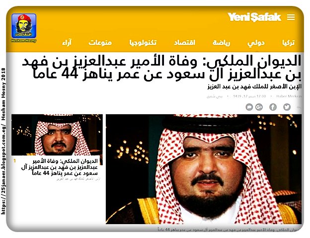 افتكاسات كل الاخبار المنشورة عن انباء وفاة الأمير عبدالعزيز بن فهد بن عبدالعزيز آل سعود عن عمر يناهز 44 عاما الإبن الأصغر للملك فهد بن عبد العزيز